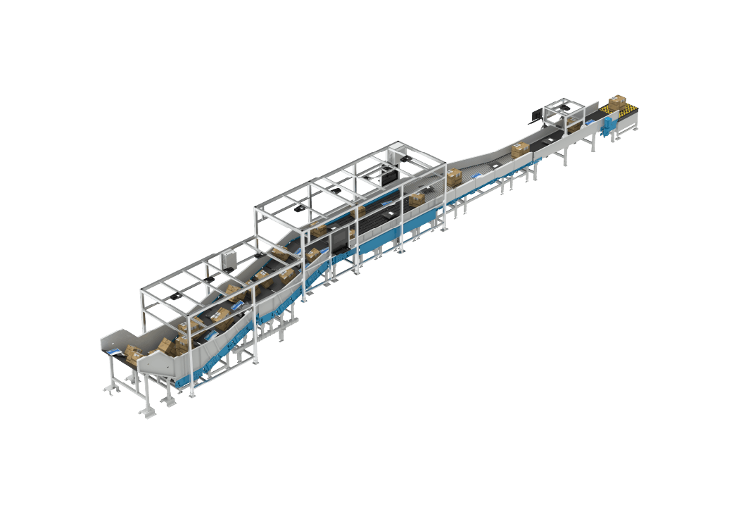 Durch ein breiteres und längeres Eingangsende und mehr Vereinzelungsmodule können gestapelte Pakete auf mehreren Fallstrecken vereinzelt werden. Das System arbeitet mit geringeren Lückenfehlern und ermöglicht eine bessere Handhabung gestapelter Pakete.